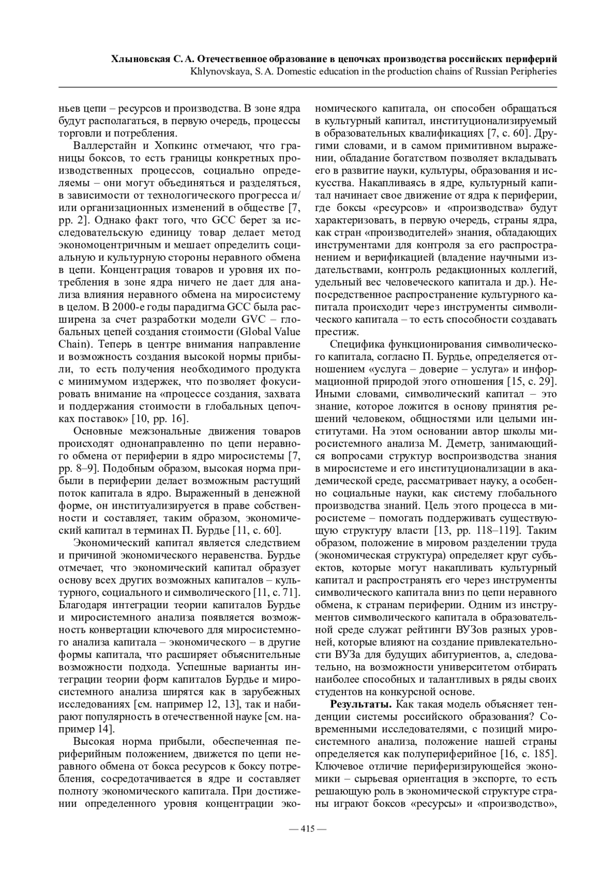 13. Demeter M. The World-Systemic Dynamics of Knowledge Production: The Distribution of Transnational Academic Capital in the Social Sciences // Journal of World-System Research. 2019. Vol. 25, № 1. pp. 111-144. https://doi.org/10.5195/JWSR.2019.887