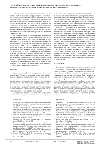 7. Петухов Р.В. Латов Ю,В. Что скрывается за запросом на перемены? // СОЦИС. Социальные исследования. 2022. № 2. С. 157-160. EDN: FWOAQQ