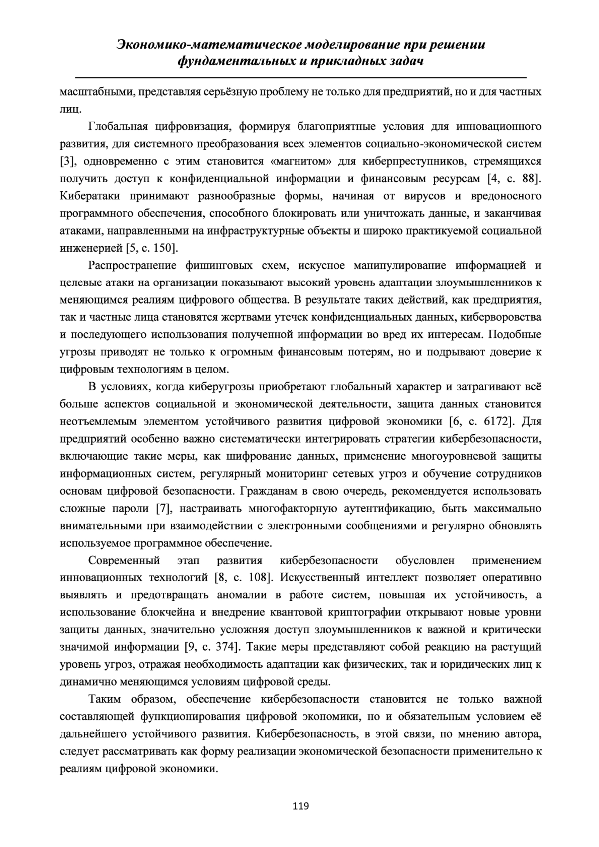 7. Назаров Д.М. Методика создания надежного пароля для обеспечения экономической безопасности в условиях цифровизации. Известия Санкт-Петербургского государственного экономического университета. 2022. № 1 (133). С. 155-160. EDN: JNFFUE