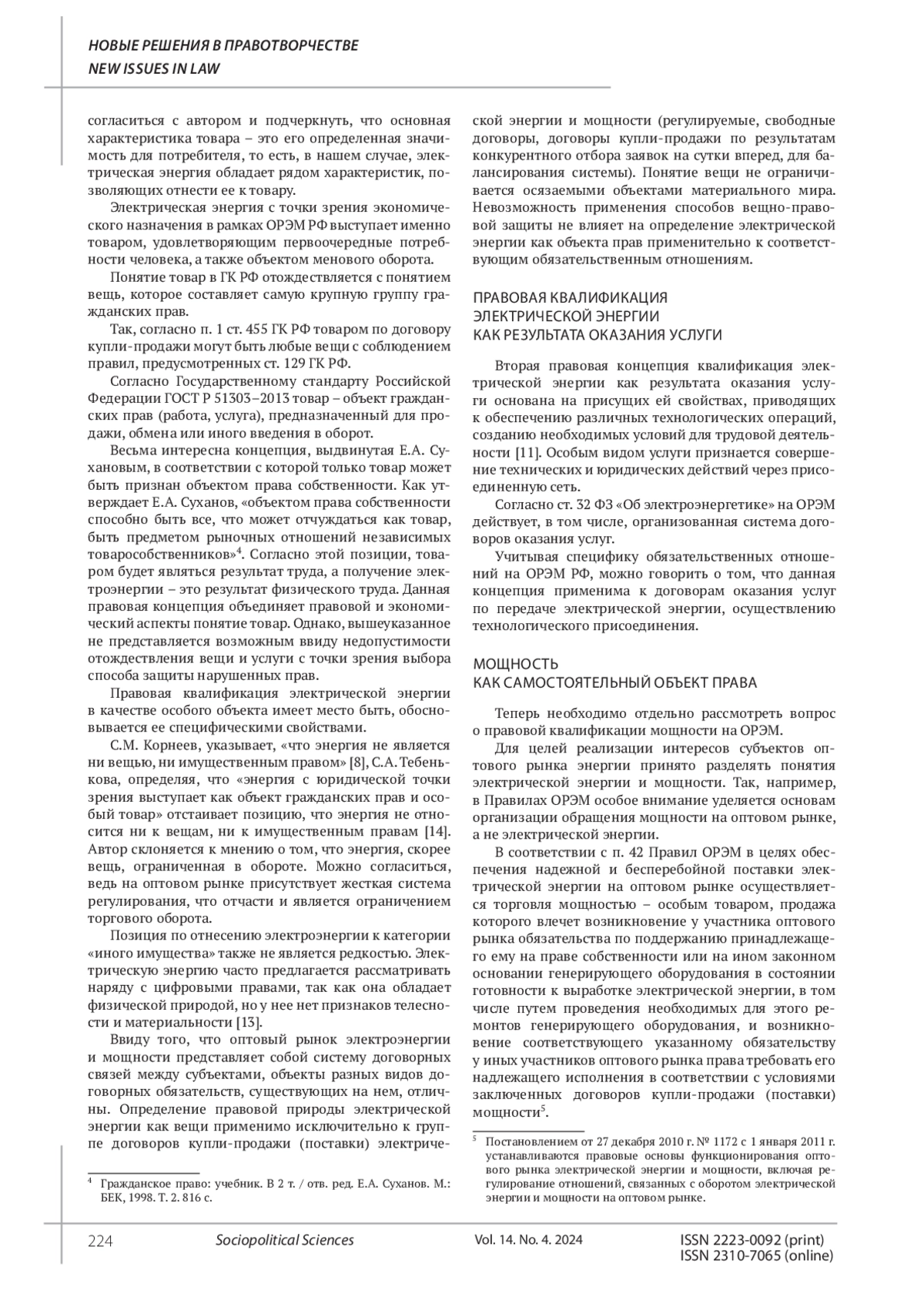 14. Тебенькова С.А. Электрическая энергия как объект гражданских прав // Вестник Удмуртского университета. 2013. Вып. 4. С. 186. EDN: RGSKPX