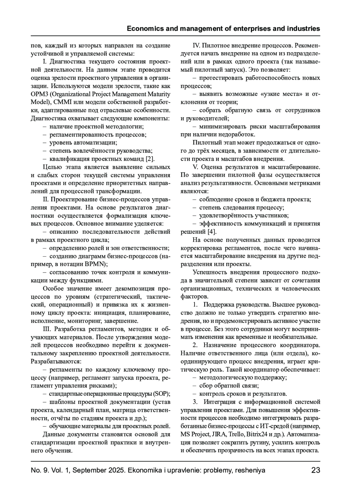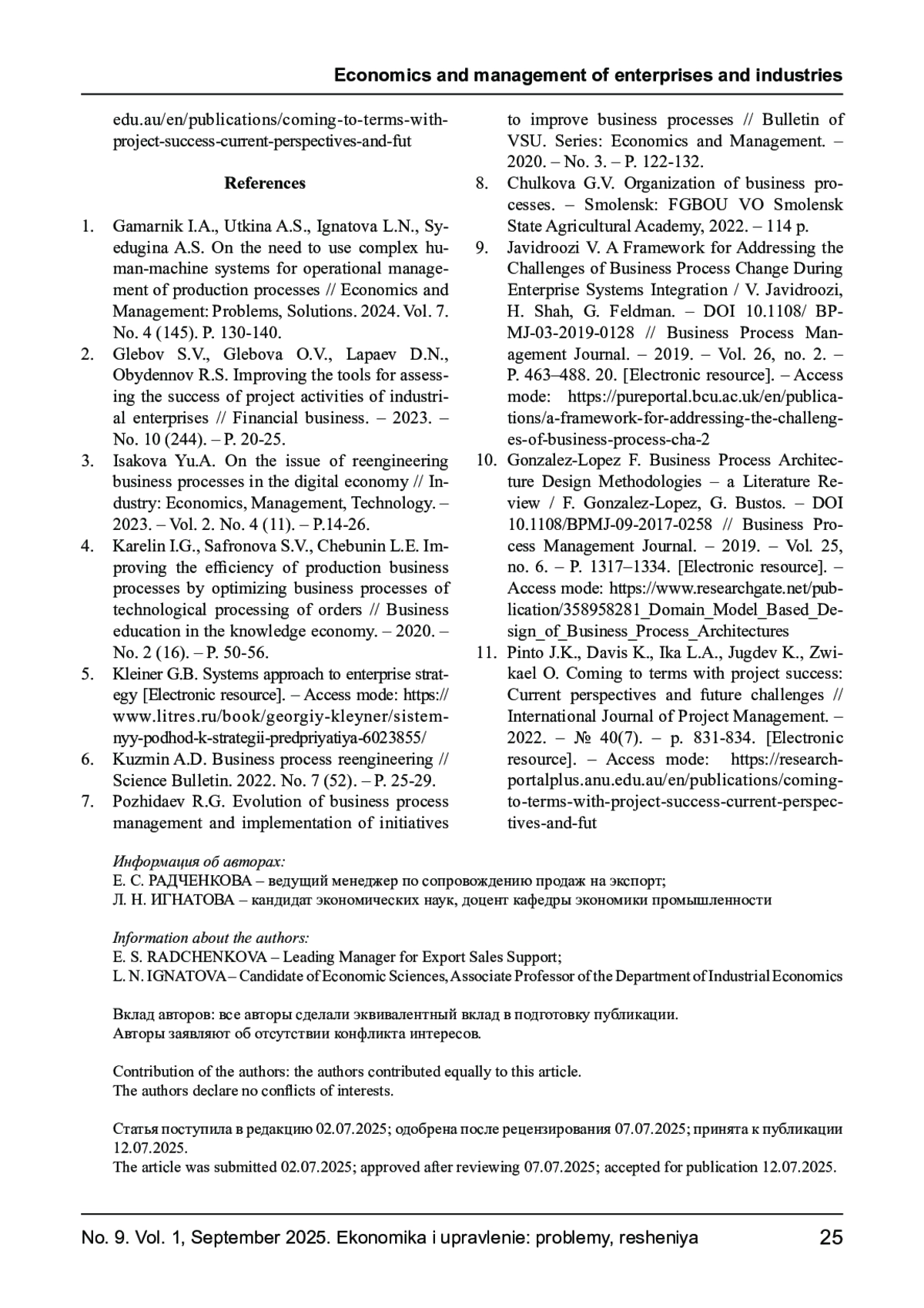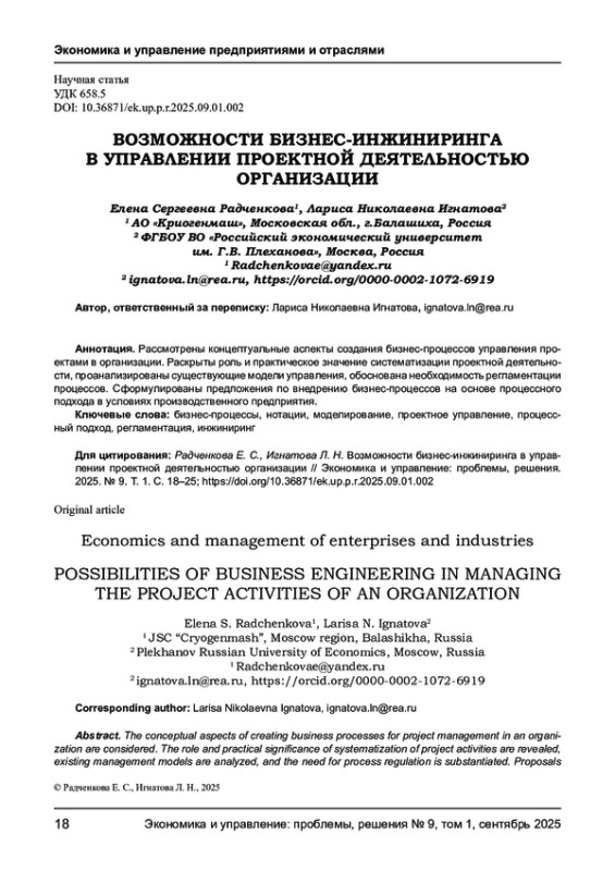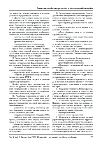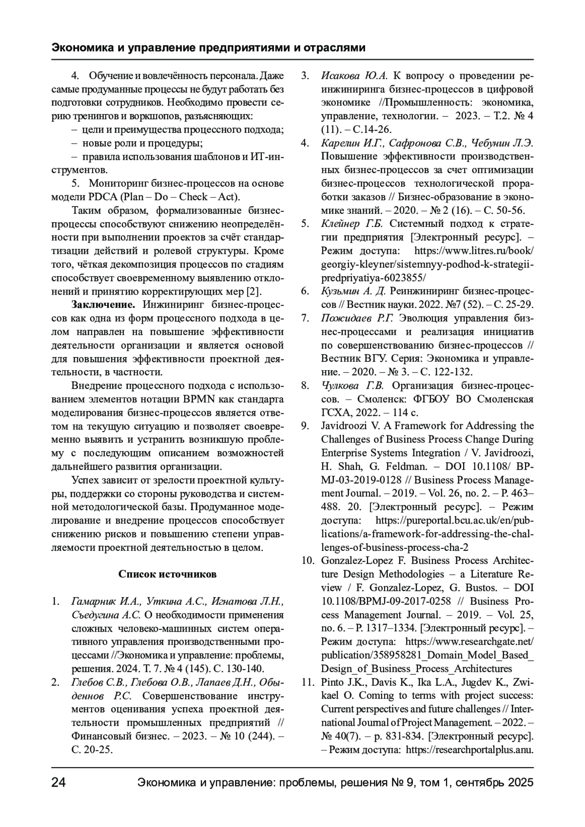 3. Исакова Ю.А. К вопросу о проведении реинжиниринга бизнес-процессов в цифровой экономике //Промышленность: экономика, управление, технологии. - 2023. - Т.2. № 4 (11). - С.14-26. EDN: ACQWAN