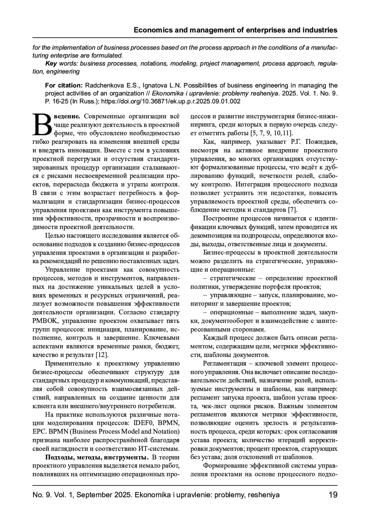 7. Пожидаев Р.Г. Эволюция управления бизнес-процессами и реализация инициатив по совершенствованию бизнес-процессов // Вестник ВГУ. Серия: Экономика и управление. - 2020. - № 3. - С. 122-132.