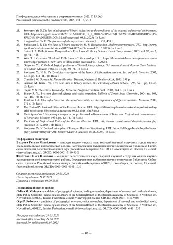 24. Leiter R. A. Reflections on Ranganathan’s Five Laws of Library Science // Law Library Journal. 2003. Vol. 95, № 3. P. 411-418.