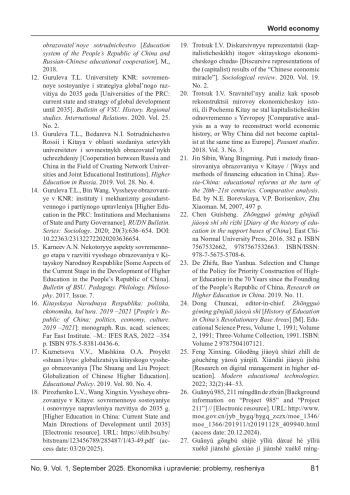14. Гурулева ТЛ, Бин Ван. Высшее образование в КНР: институты и механизмы государственного и партийного управления. Вестник РУДН. Серия: Социология. 2020;20(3):636- 654. DOI: 10.22363/231322722020203636654