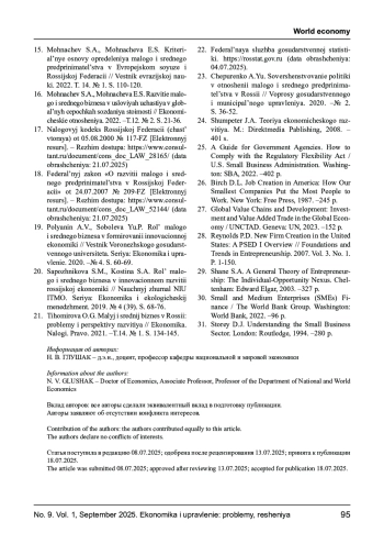 21. Тихомирова О.Г. Малый и средний бизнес в России: проблемы и перспективы развития // Экономика. Налоги. Право. 2021. -Т.14. № 1. С. 134-145.