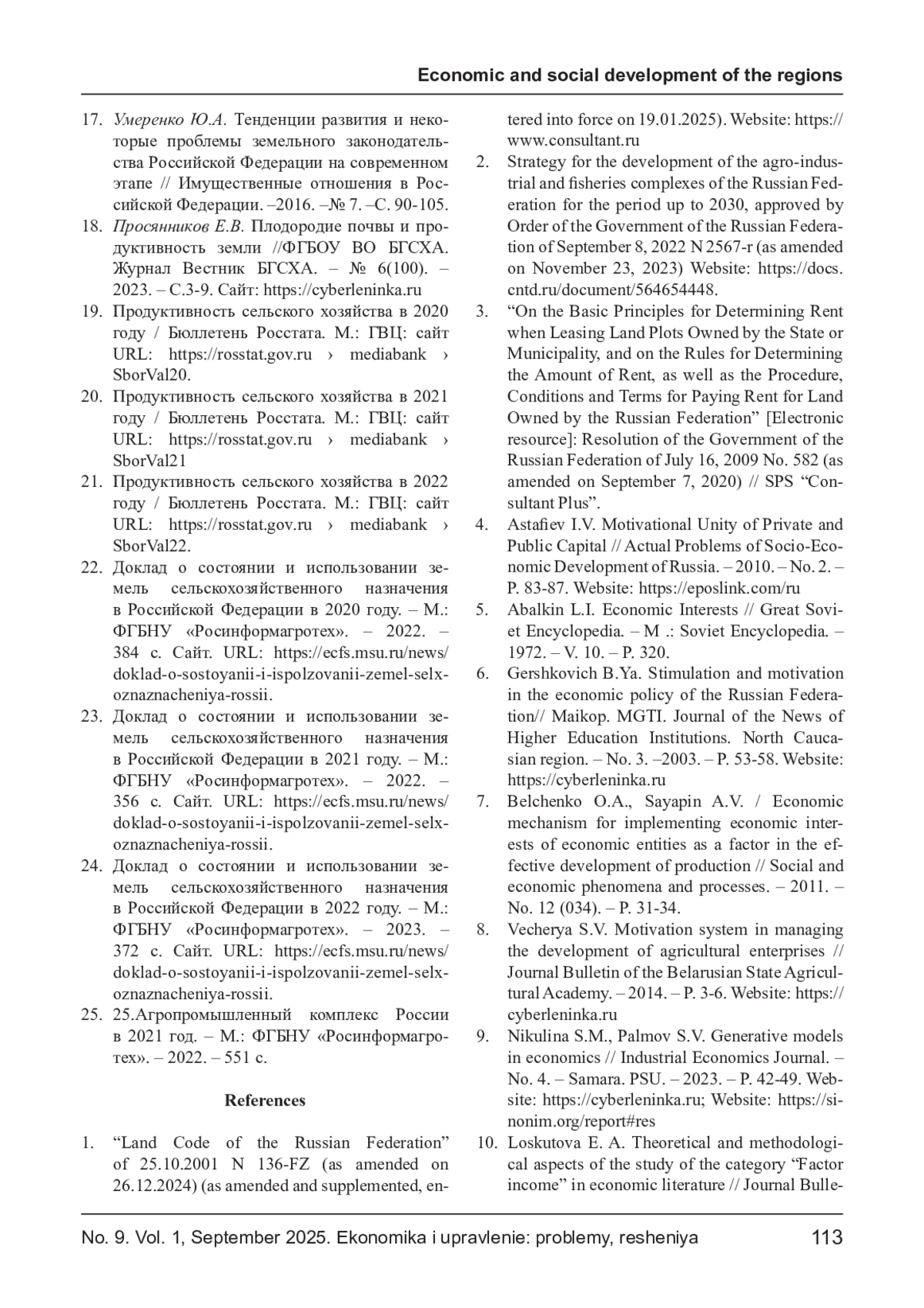 25. Доклад о состоянии и использовании земель сельскохозяйственного назначения в Российской Федерации в 2022 году. - М.: ФГБНУ “Росинформагротех”. - 2023. - 372 с. Сайт. URL: https://ecfs.msu.ru/news/doklad-o-sostoyanii-i-ispolzovanii-zemel-selxoznaznacheniya-rossii.