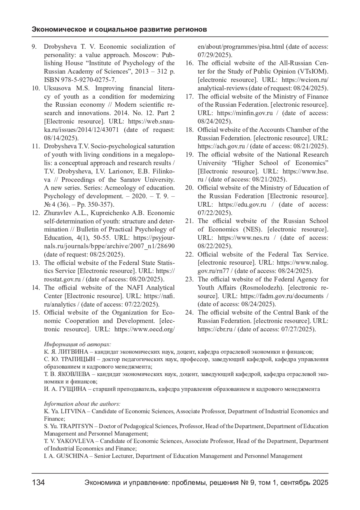 10. Уксусова М.С. Повышение финансовой грамотности молодежи как условие модернизации экономики России // Современные научные исследования и инновации. 2014. № 12. Ч. 2 [Электронный ресурс]. URL: https://web.snauka.ru/issues/2014/12/43071 (дата обращения: 14.08.2025). EDN: TFQNDD