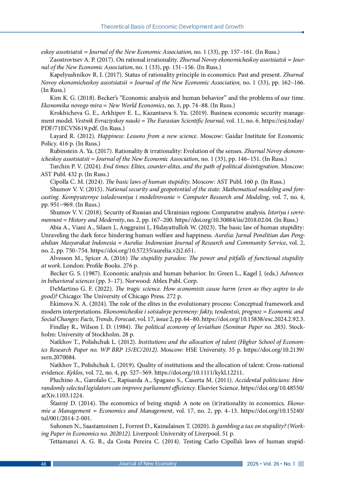 7. Капелюшников Р. И. (2017). Статус принципа рациональности в экономической теории: прошлое и настоящее // Журнал Новой экономической ассоциации. № 1 (33). С. 162-166. EDN: YLYLBN