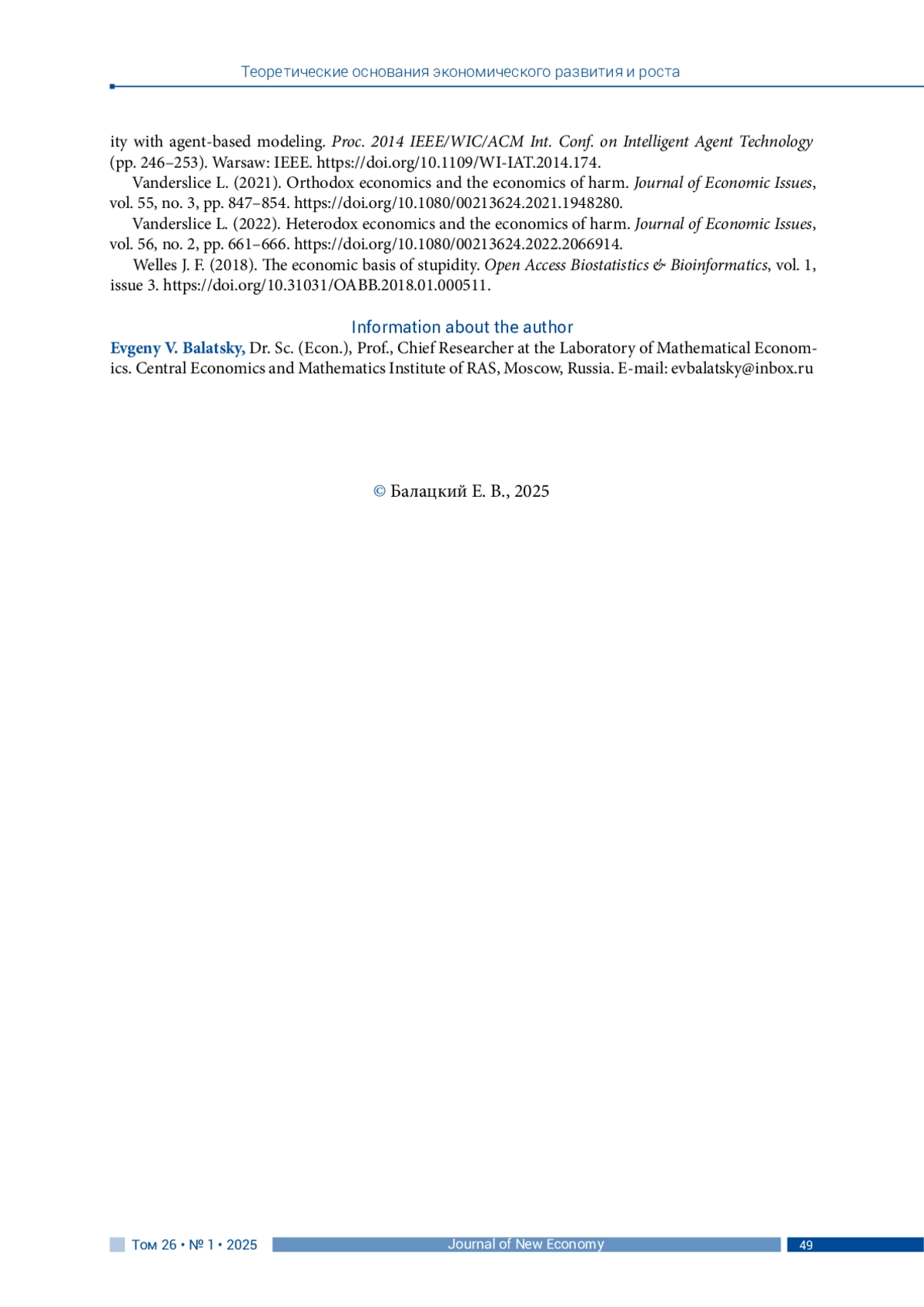 28. Vanderslice L. (2021). Orthodox economics and the economics of harm. Journal of Economic Issues, vol. 55, no. 3, pp. 847-854. DOI: 10.1080/00213624.2021.1948280 EDN: GBWNBO