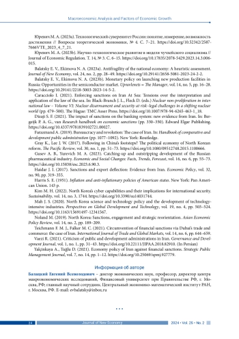 5. Балацкий Е. В., Екимова Н. А. (2023). Возможности и ограничения “модели народного капитализма” // Мир новой экономики. Т. 17, № 3. С. 40-54. DOI: 10.26794/2220-6469-2023-17-3-40-54 EDN: EFQEEO