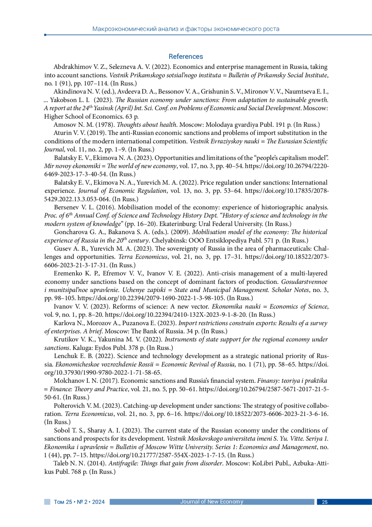 28. Gusev A. B., Yurevich M. A. (2023). Catching-up and outstripping development of the Russian pharmaceutical industry. Economic and Social Changes: Facts, Trends, Forecast, vol. 16, no. 6, pp. 55-73. DOI: 10.15838/esc.2023.6.90.3 EDN: PELSDF