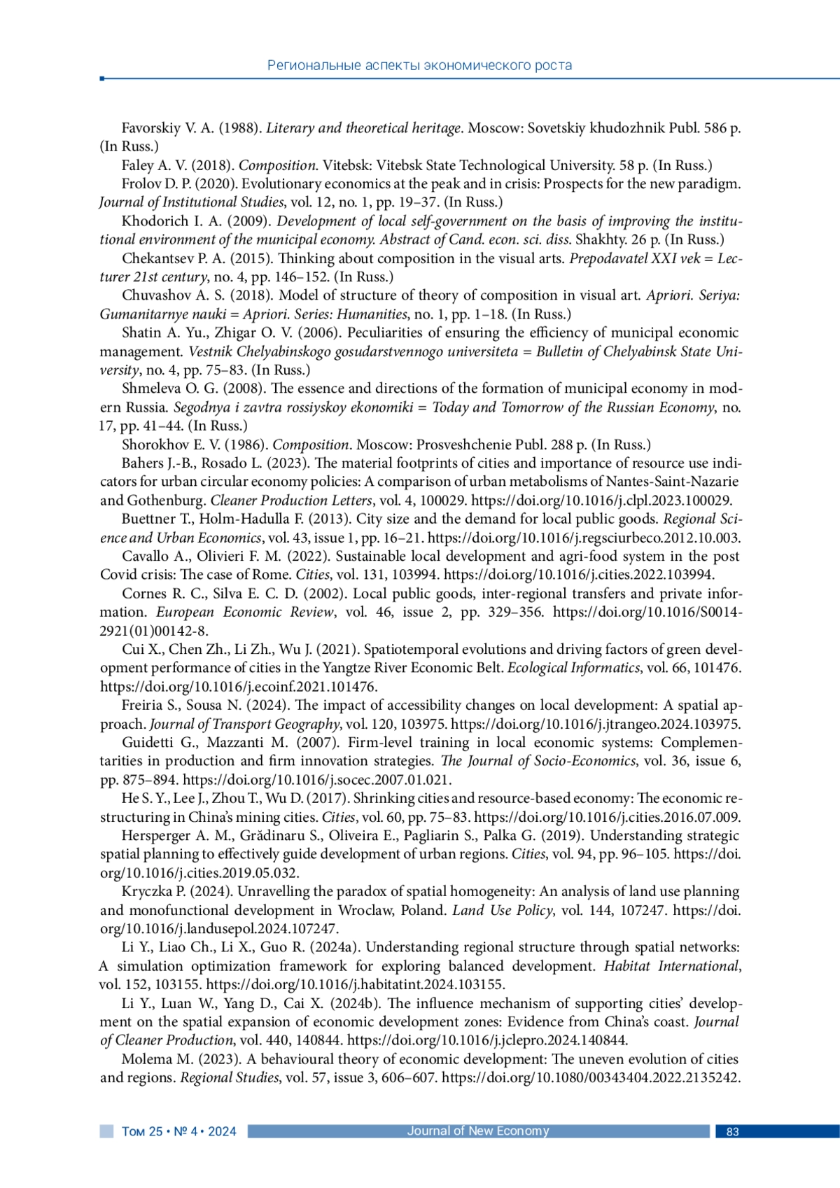 13. Ковальчук Н. А. (1990). Композиция. Художественные средства. Москва: Плакат. 32 с. Лаврикова Ю. Г. (2008). Концептуальные основы пространственного развития регионов // Журнал экономической теории. № 4. С. 147-162.