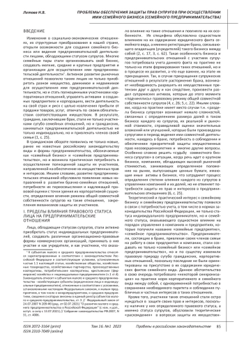 Levushkin A.N. Family matrimonial entrepreneurship and the sale of spouses’ business under the laws of the Russian Federation // Laws of Russia: experience, analysis, practice. 2018. N 4. P. 25. EDN: YXIGJL