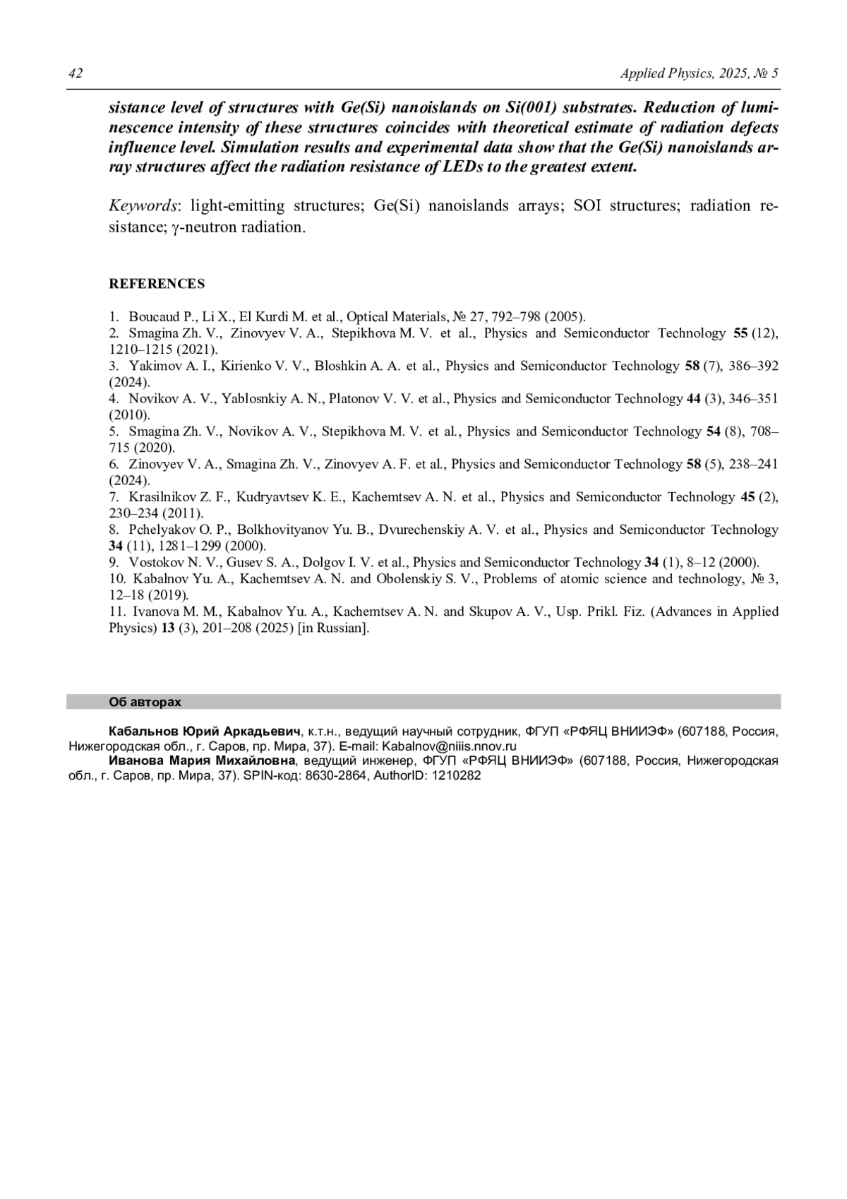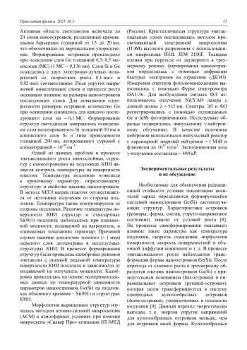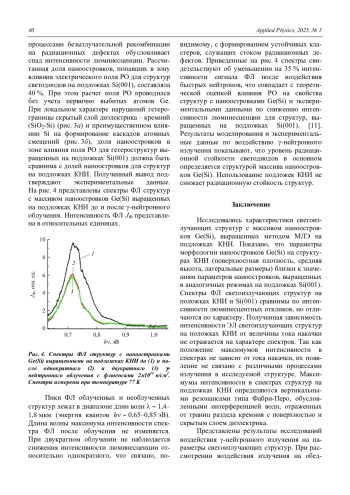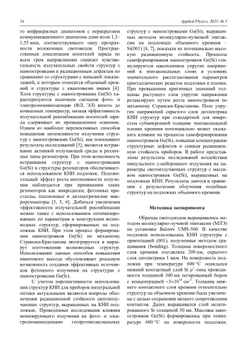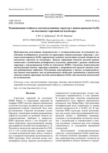 КАБАЛЬНОВ Ю. А., ИВАНОВА М. М. РАДИАЦИОННАЯ СТОЙКОСТЬ СВЕТОИЗЛУЧАЮЩИХ СТРУКТУР С НАНООСТРОВКАМИ GE(SI) НА ПОДЛОЖКАХ «КРЕМНИЙ НА ИЗОЛЯТОРЕ» // ПРИКЛАДНАЯ ФИЗИКА. 2025. №5
