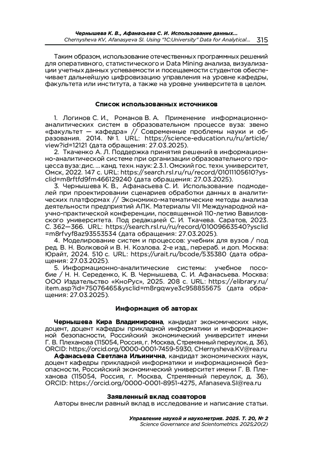 Заключение. Таким образом, проведение интеллектуального анализа данных делает возможным использование образовательных данных для повышения качества образовательного процесса, а использование отечественных программных решений обеспечивает дальнейшую цифровизацию вуза.