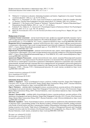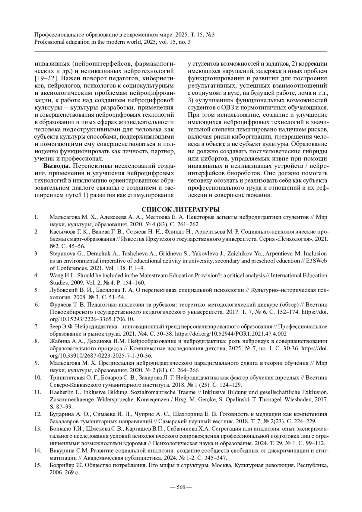 20. Стахмич С.В. Генезис понятий «инклюзия», «инклюзивное образование», «образовательное инклюзивное пространство» // Гуманитарный научный вестник. 2025. № 1. С. 117-123.