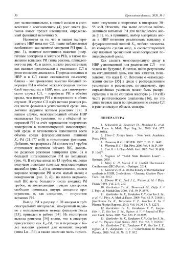 Как сделать межэлектродную среду в НВР усиливающей для реализации СЛ – это задача на будущее. В целом, наши результаты на сегодняшний день, как нам кажется, показывают, что идея В. С. Летохова о «самоудержании света» [35] в среде с распределенным усилением и рассеянием, по-видимому, при определённых условиях может быть распространена и на не слишком жесткую ( 10 кэВ) часть рентгеновского диапазона [16], но это лишь первые шаги по продвижению схемы СЛ в рентгеновскую область спектра.