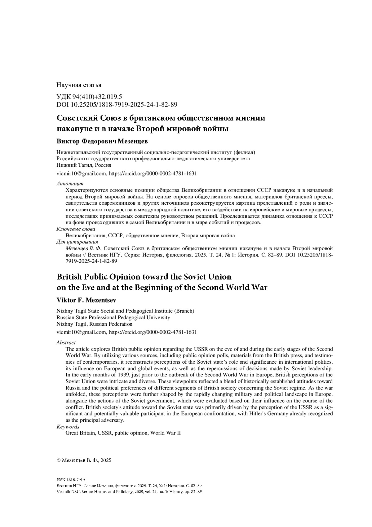 Характеризуются основные позиции общества Великобритании в отношении СССР накануне и в начальный период Второй мировой войны. На основе опросов общественного мнения, материалов британской прессы, свидетельств современников и других источников реконструируется картина представлений о роли и значении советского государства в международной политике, его воздействии на европейские и мировые процессы, последствиях принимаемых советским руководством решений. Прослеживается динамика отношения к СССР на фоне происходивших в самой Великобритании и в мире событий и процессов.