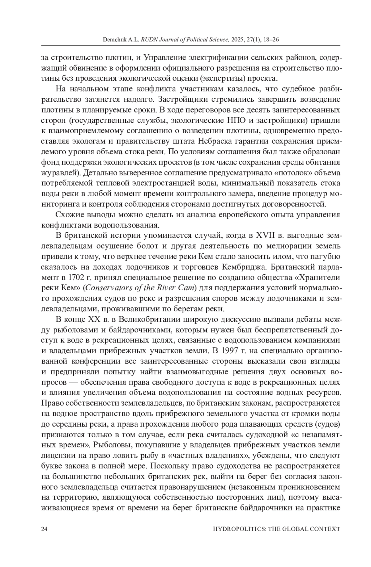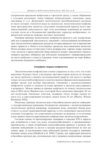 7. Gleditsch N.P., Furlong K., Hegre H., Lacina B., Owen T. Conflicts over shared rivers: Resource scarcity or fuzzy boundaries // Political Geography. 2006. No. 25. P. 361-382. DOI: 10.1016/j.polgeo.2006.02.004
