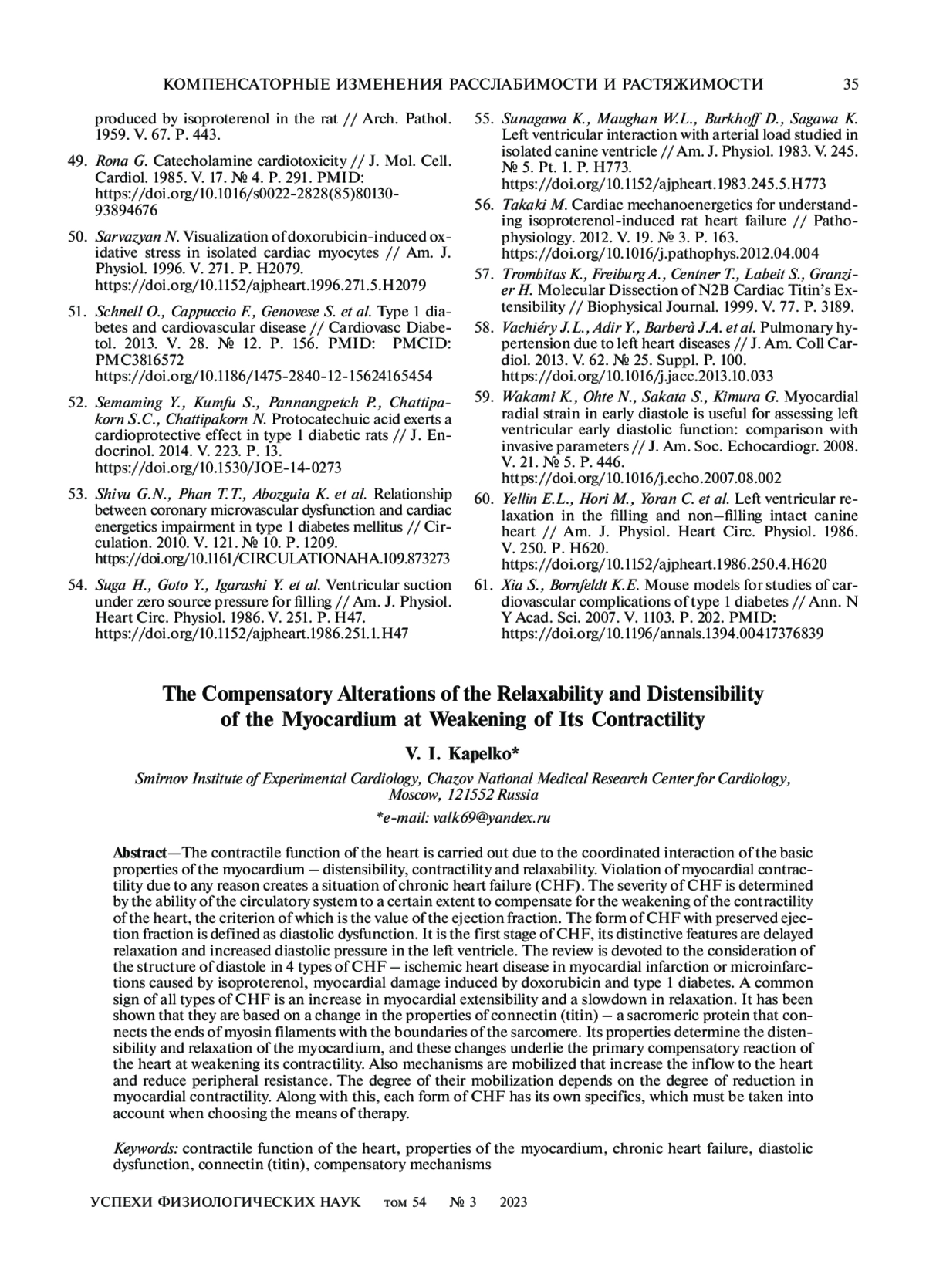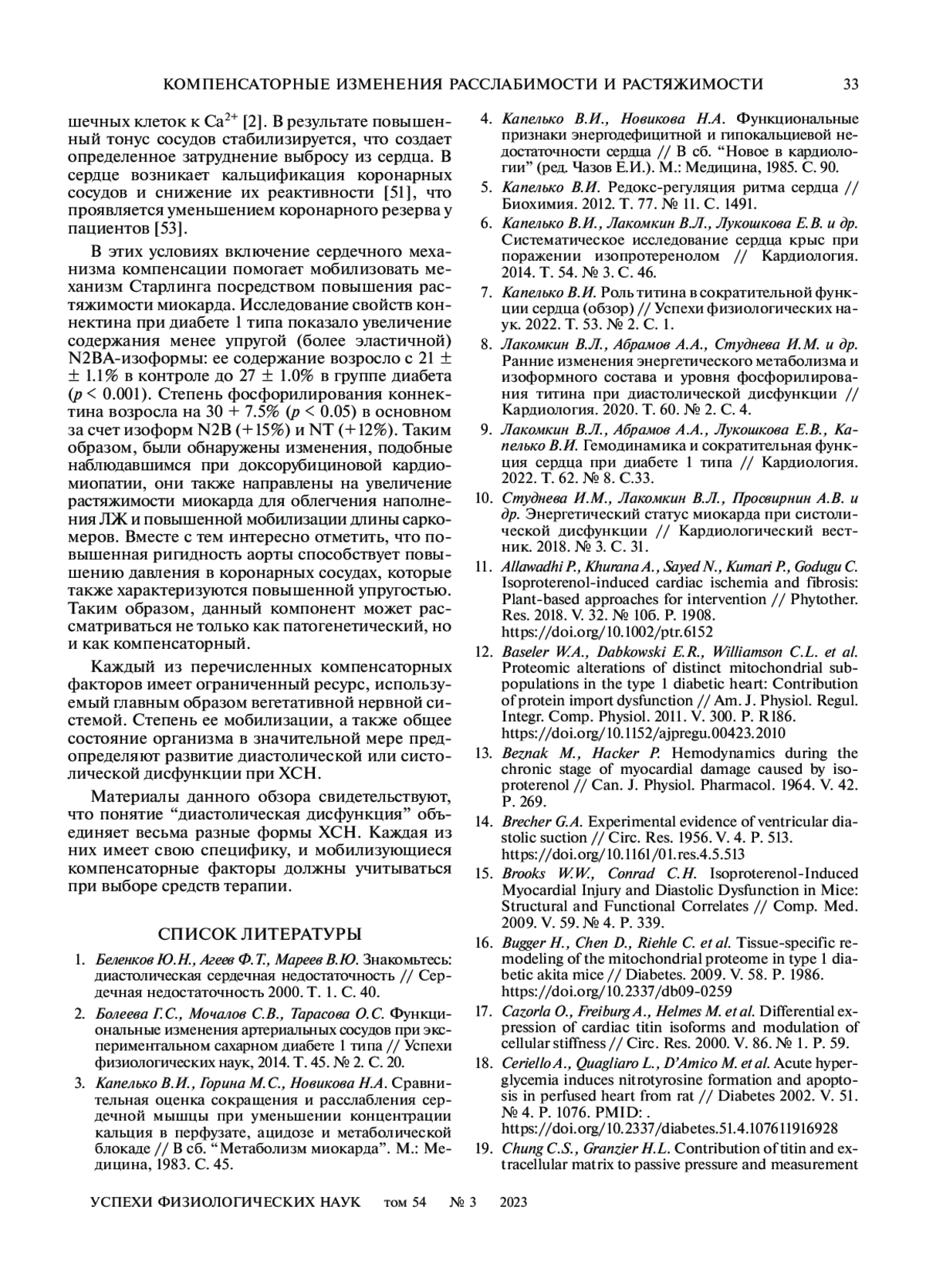 7. Капелько В.И. Роль титина в сократительной функции сердца (обзор) // Успехи физиологических наук. 2022. Т. 53. № 2. С. 1. EDN: CMTEAB