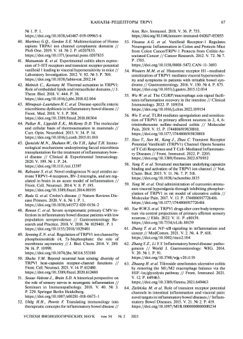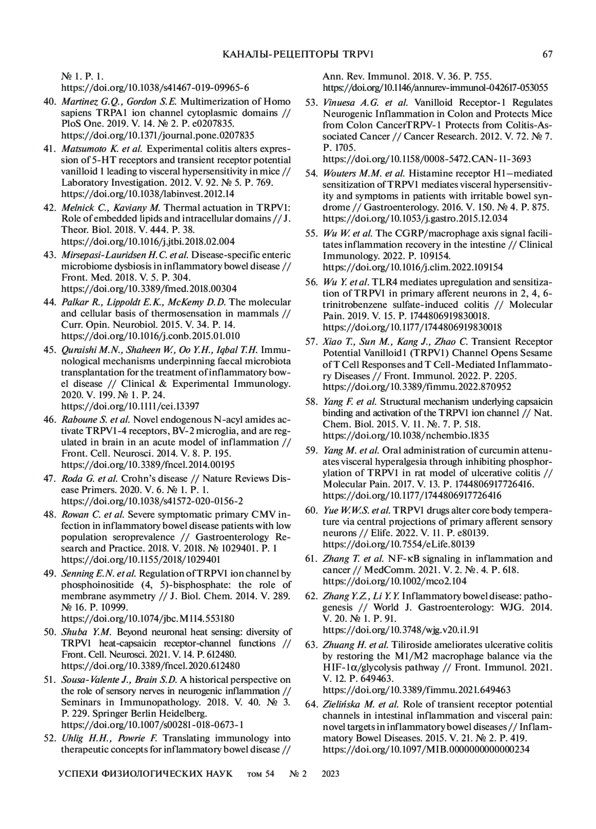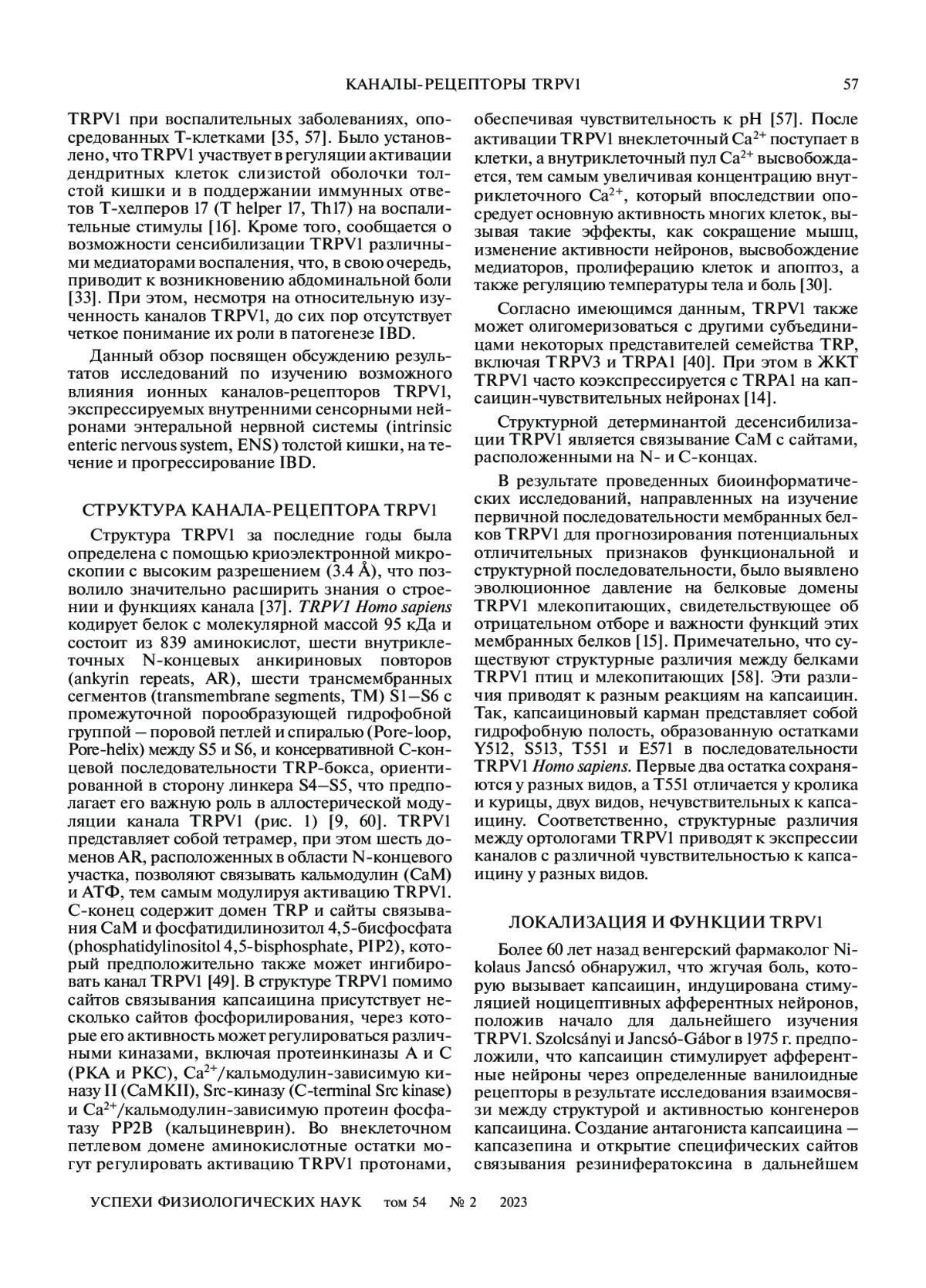 Статья: КАНАЛЫ-РЕЦЕПТОРЫ TRPV1 В ПАТОГЕНЕЗЕ ВОСПАЛИТЕЛЬНЫХ ЗАБОЛЕВАНИЙ КИШЕЧНИКА (2023)
