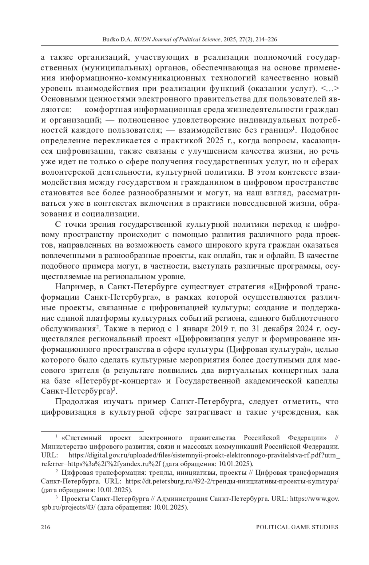 3. Белов С.И. Манипулятивный потенциал массовой культуры как инструмента политического воздействия // Вестник Российского университета дружбы народов. Серия: Политология. 2024а. Т. 26. № 2. С. 254-262. DOI: 10.22363/2313-1438-2024-26-2-254-262 EDN: NOCFHI