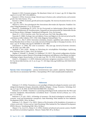 1. Бодрунов С. Д. (2018а). Ноономика как новая парадигма сбалансированного эколого-экономико-социотехнологического развития // Энергия: экономика, техника, экология. № 9. С. 32-36. DOI: 10.31857/S023336190001709-5 EDN: YOTNVB