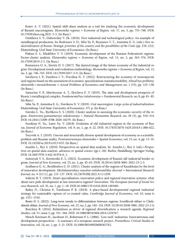 17. Сорокина Н. Ю., Латов Ю. В. (2018). Эволюция старопромышленных регионов в экономике России // Journal of Economic Regulation. Т. 9, № 1. С. 6-22. 10.17835/2078-5429.2018.9.1.006- 022. DOI: 10.17835/2078-5429.2018.9.1.006-022 EDN: YWQVFK