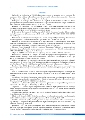 1. Батьковский А. М., Фомина А. В. (2020). Информационное обеспечение автоматизированных систем управления на предприятиях оборонно-промышленного комплекса // Экономические исследования и разработки. № 6. С. 97-104. EDN: SEXEBV