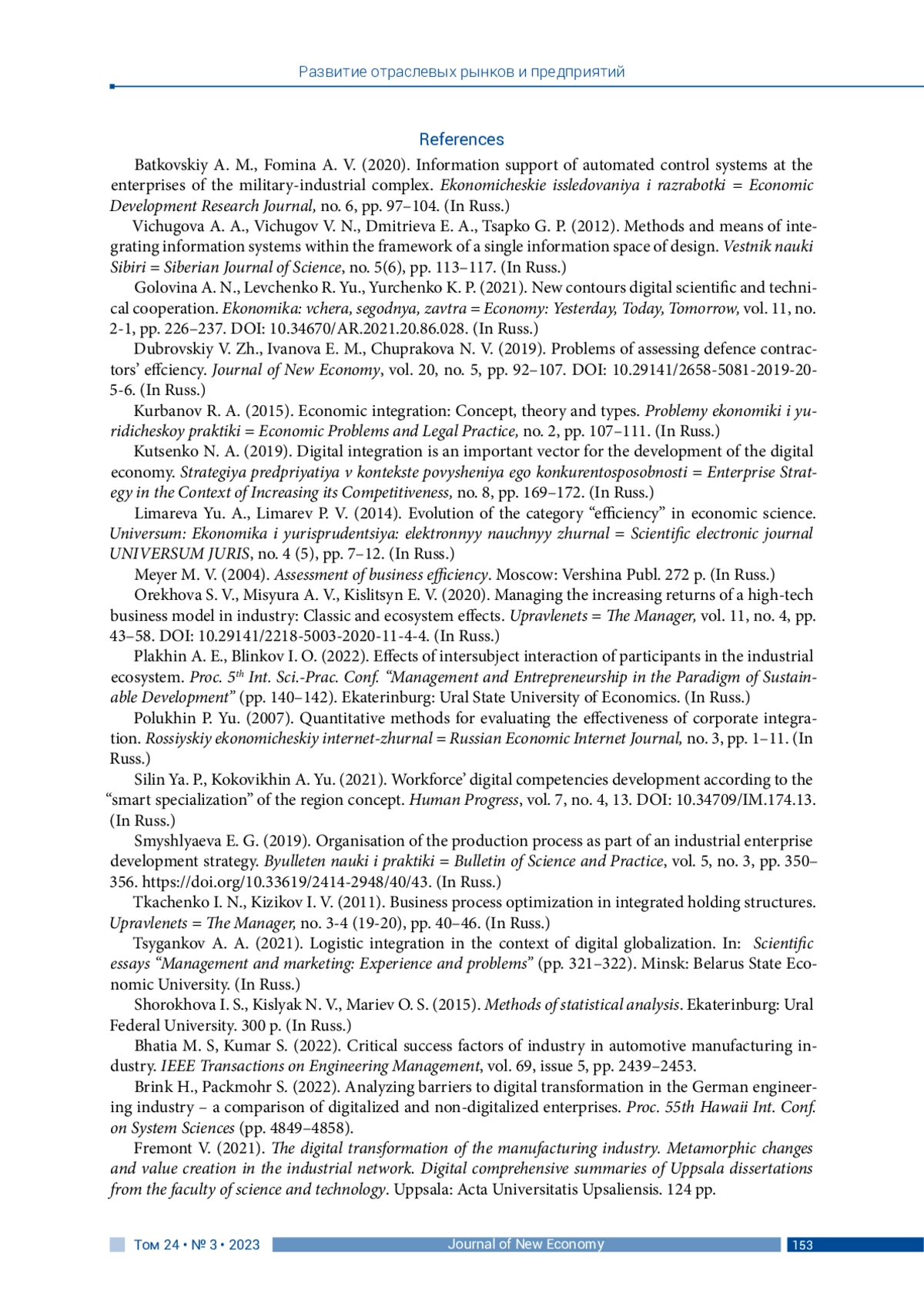 6. Куценко Н. А. (2019). Цифровая интеграция - важный вектор развития цифровой экономики // Стратегия предприятия в контексте повышения его конкурентоспособности. № 8. С. 169-172. EDN: GDUIPN