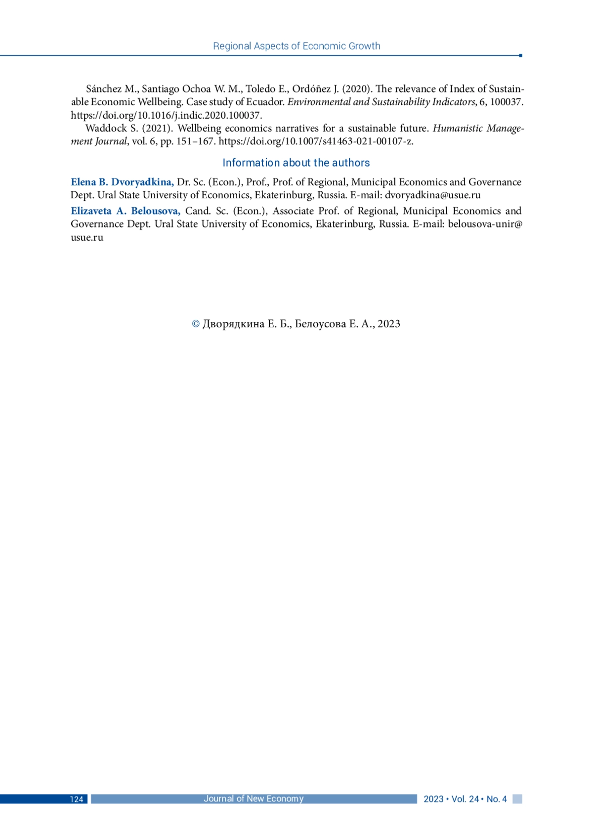 19. Belousova E. A. (2022). Economic well-being: Semantic environment and research contexts at a municipal level. Journal of New Economy, vol. 23, no. 4, pp. 46-68. DOI: 10.29141/2658-5081-2022-23-4-3 EDN: JTTVZH