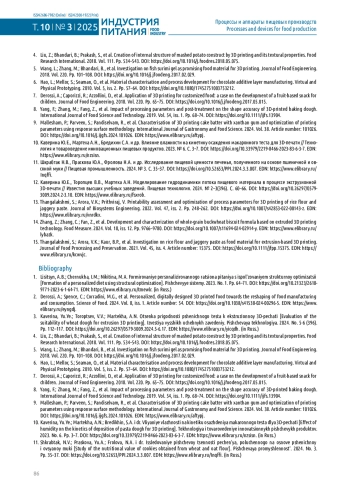 4. Liu, Z.; Bhandari, B.; Prakash, S., et al. Creation of internal structure of mashed potato construct by 3D printing and its textural properties. Food Research International. 2018. Vol. 111. Pp. 534-543. DOI: 10.1016/j.foodres.2018.05.075