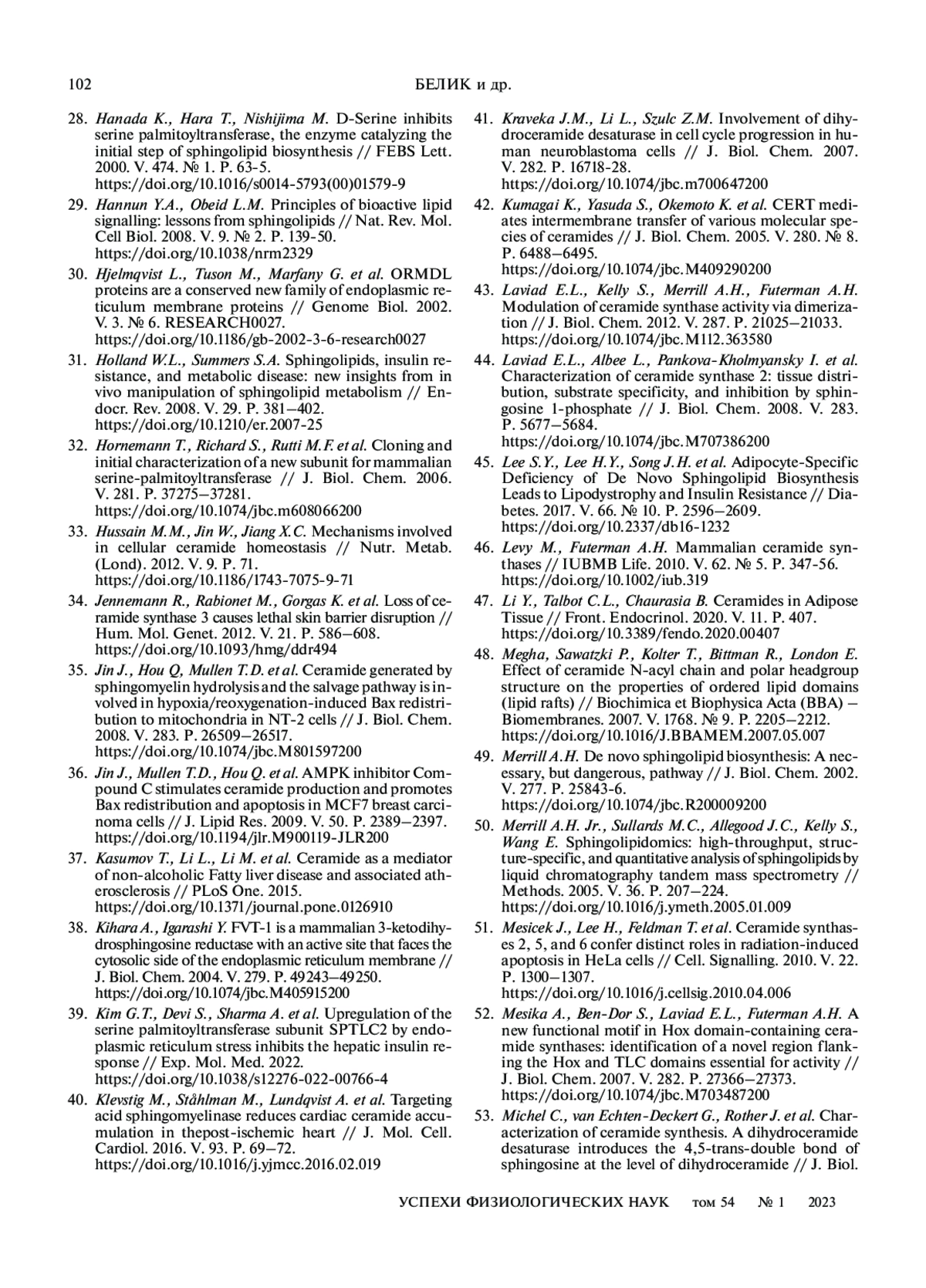 49. Merrill A.H. De novo sphingolipid biosynthesis: A necessary, but dangerous, pathway // J. Biol. Chem. 2002. V. 277. P. 25843-6. DOI: 10.1074/jbc.R200009200