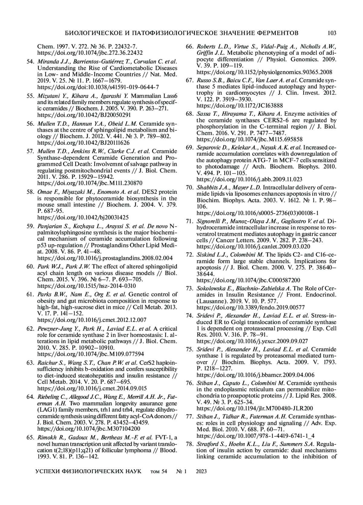 62. Pewzner-Jung Y., Park H., Laviad E.L. et al. A critical role for ceramide synthase 2 in liver homeostasis: I. alterations in lipid metabolic pathways // J. Biol. Chem. 2010. V. 285. P. 10902–10910. DOI: 10.1074/jbc.M109.077594 EDN: NZRXHJ