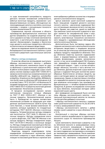 Статья: РАЗРАБОТКА КИСЛОМОЛОЧНОГО НАПИТКА С СУХОЙ МОЛОЧНОЙ СЫВОРОТКОЙ И МУКОЙ ИЗ ШРОТА ОБЛЕПИХИ (2025)
