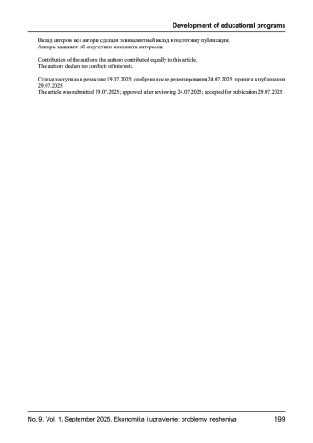 РУДАКОВ М. А. ФОРМИРОВАНИЕ ПРОФЕССИОНАЛЬНЫХ КОМПЕТЕНЦИЙ У ОБУЧАЮЩИХСЯ В РАМКАХ СТАНОВЛЕНИЯ НОВОЙ МОДЕЛИ ВЫСШЕГО ОБРАЗОВАНИЯ (ЧАСТЬ 1. ТЕОРЕТИЧЕСКИЙ АСПЕКТ) // ЭКОНОМИКА И УПРАВЛЕНИЕ: ПРОБЛЕМЫ, РЕШЕНИЯ. 2025. ТОМ 1 № 9