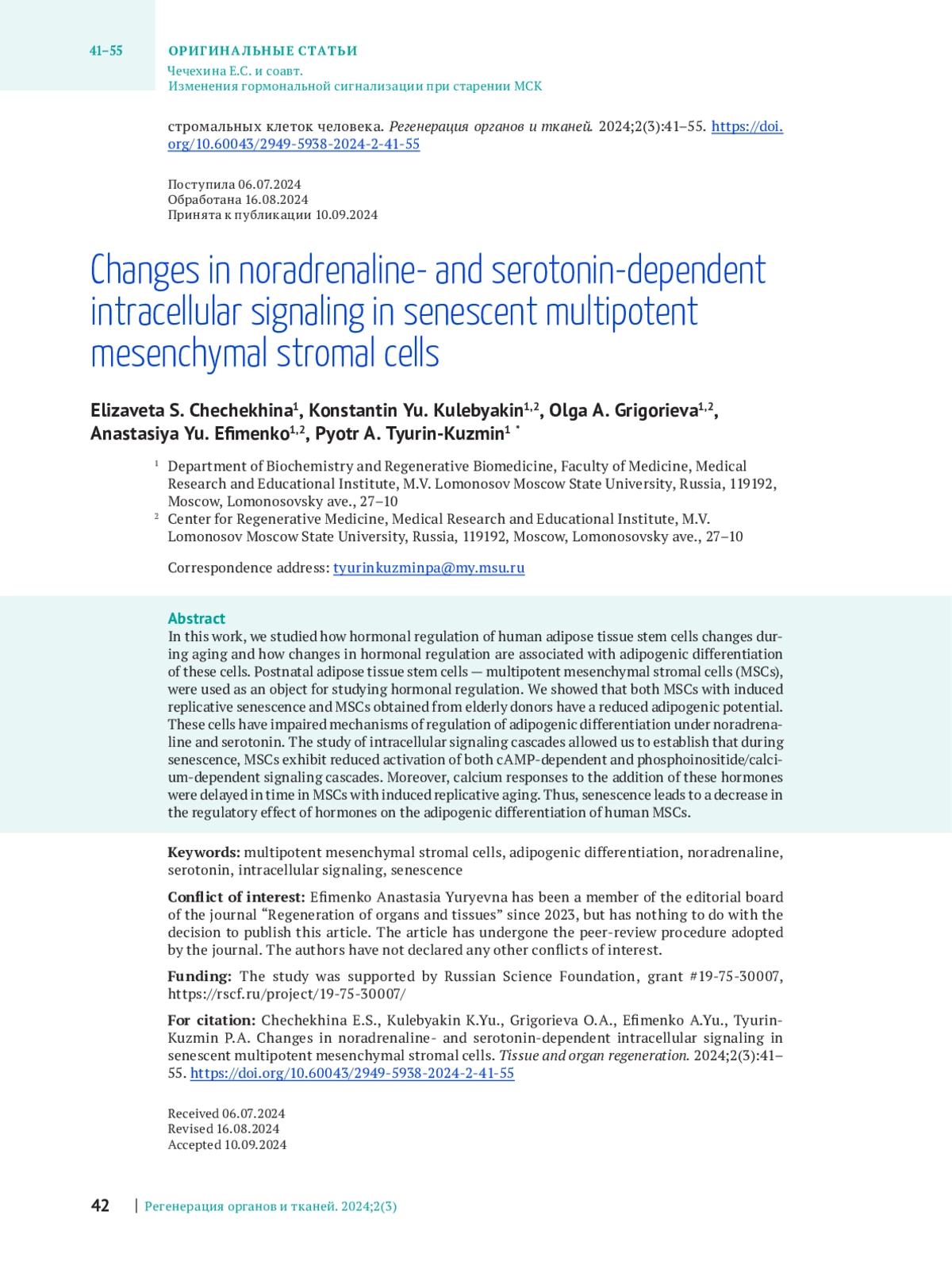 23. Chechekhin VI, Kulebyakin KY, Kalinina NI, Tyurin-Kuzmin PA. Noradrenaline and serotonin-dependent sensitization of MSCs to noradrenaline. MethodsX. 2024;12:102587.