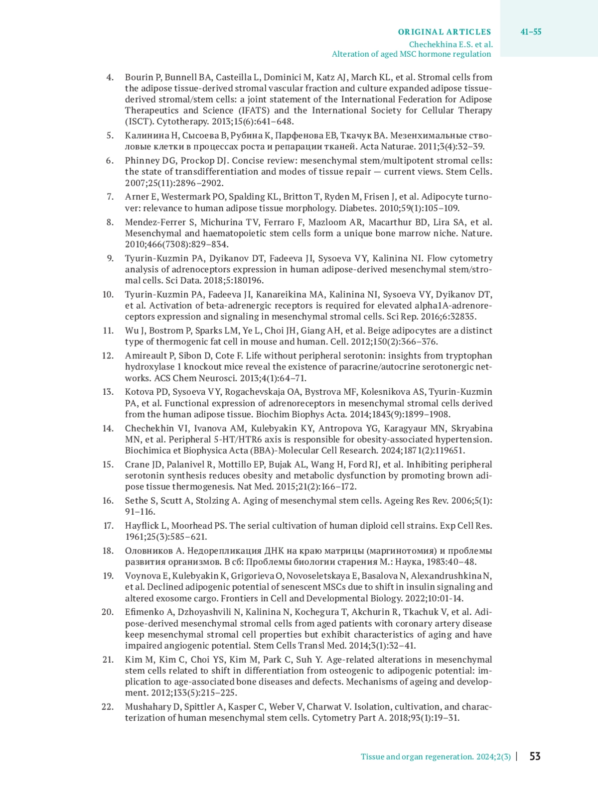 5. Калинина Н, Сысоева В, Рубина К, Парфенова ЕВ, Ткачук ВА. Мезенхимальные стволовые клетки в процессах роста и репарации тканей. Acta Naturae. 2011;3(4):32-39.