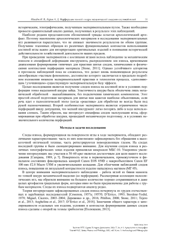 13. Buc N. Experimental series and use-wear in bone tools // Journal of Archaeological Science. 2011. No. 38. P. 546-557.