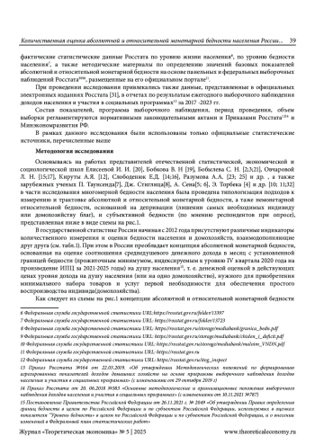 30. Кубишин Е.С., Седлов А. П., Соболева И. В. Бедность в России: методология измерения и международные сравнения// Вестник Института экономики Российской академии наук №1,2021. -с.56-70. EDN: POWMEL