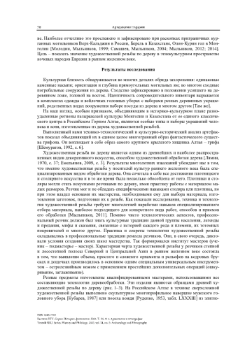 10. Мыльников В. П. Изучение археологических деревянных предметов (погребальные памятники Алтая и сопредельных территорий). М.: ИА РАН, 2014. 160 с. (Методика полевых археологических исследований. Вып. 8)
