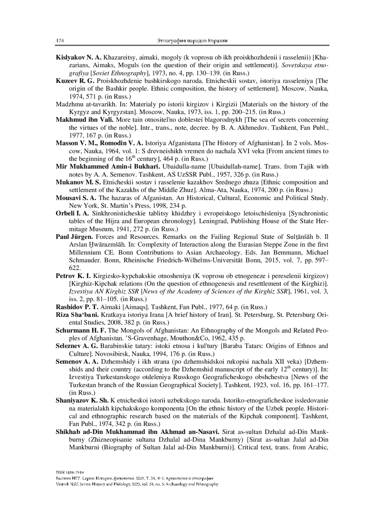 33. Кененсариев Т. Кыргыздар жана Кокон хандыгы. Ош: ОшМУ, 1997. 64 б. (на кирг. яз.) A Comprehensive History of India: The Delhi Sultanat (A.D. 1206-1526) / Eds. Mohammad Habib, Khaliq Ahmad Nizami. Delhi; Ahmedabad; Bombay: People’s Publishing House, 1970. Vol. 5. 1274 p.