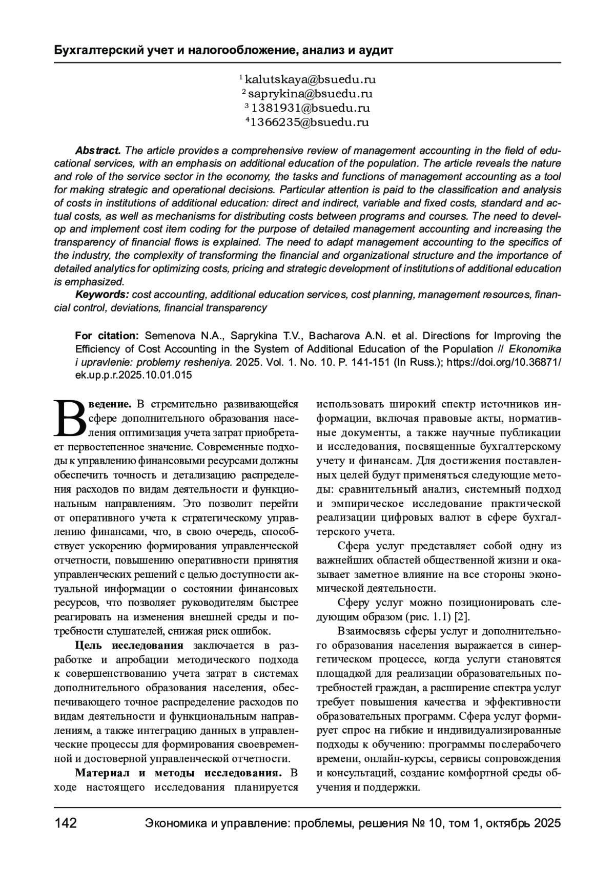 6. Лебедева Е.В. Анализ и планирование затрат в дополнительном образовании: методология и кейсы. Москва: АкадемКнига, 2024.