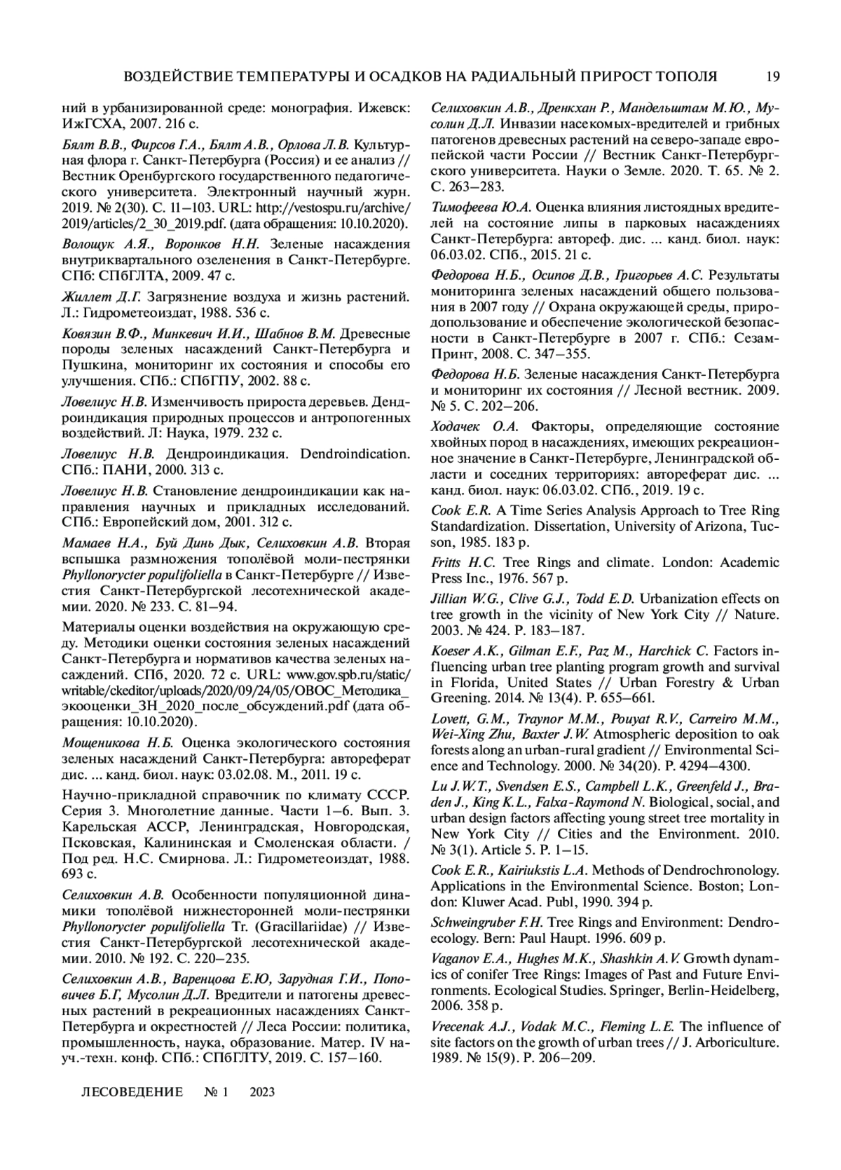19. Тимофеева Ю.А. Оценка влияния листоядных вредителей на состояние липы в парковых насаждениях Санкт-Петербурга: автореф. дис. … канд. биол. наук: 06.03.02. СПб., 2015. 21 с. EDN: ZPRYZN