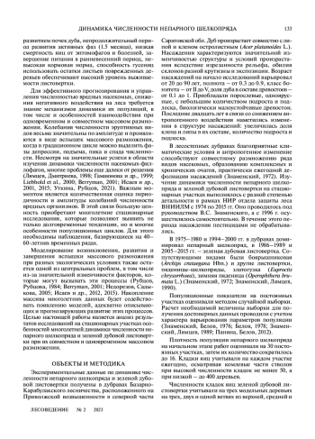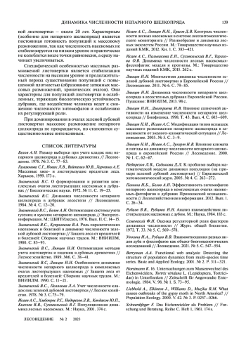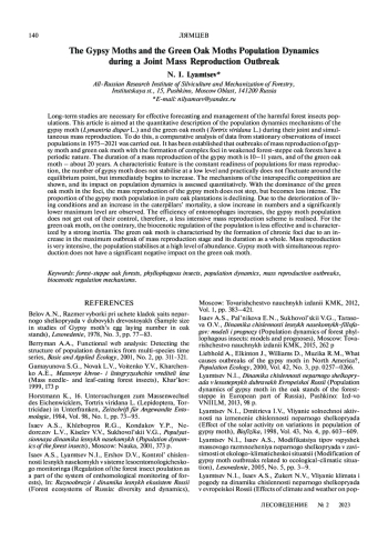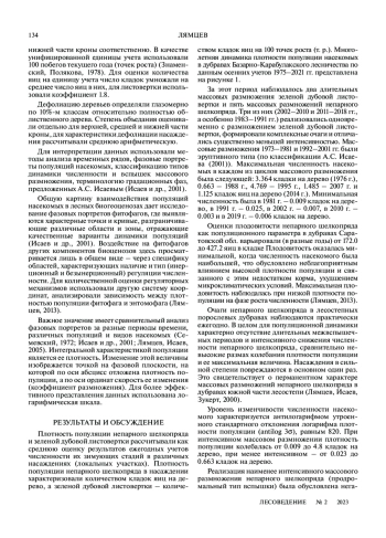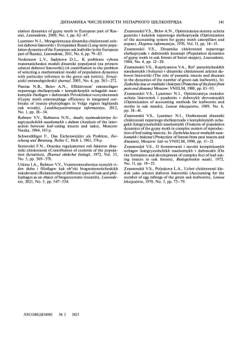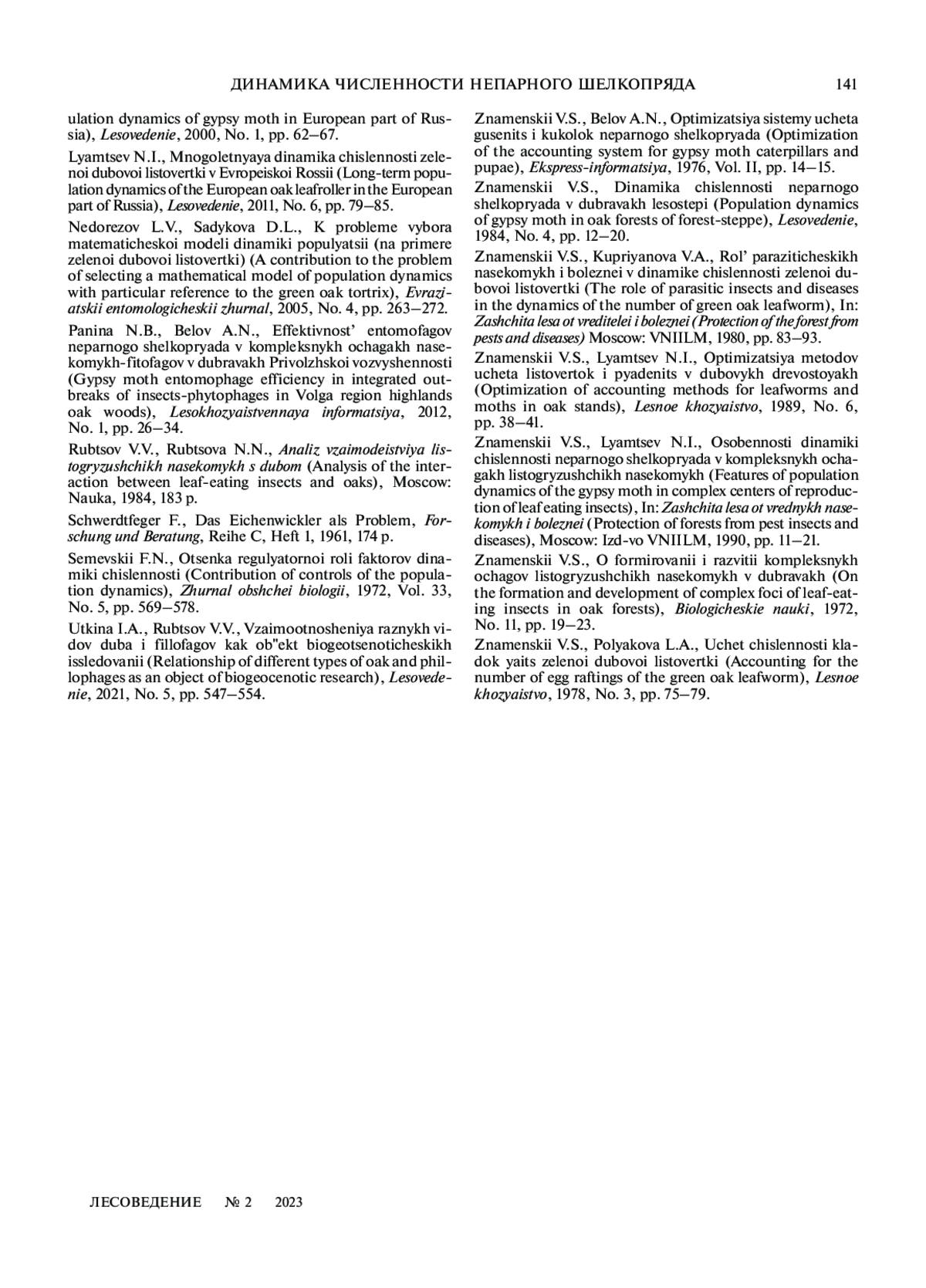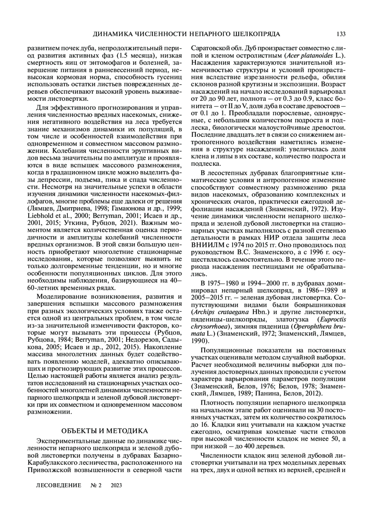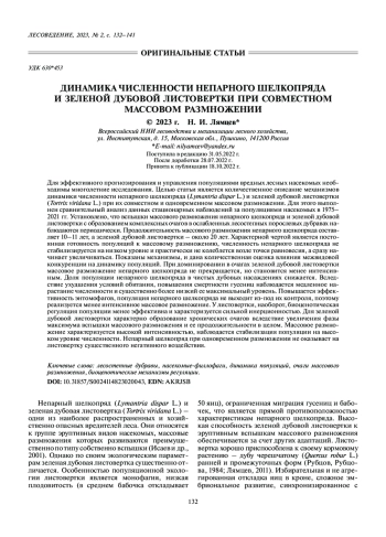 Статья: ДИНАМИКА ЧИСЛЕННОСТИ НЕПАРНОГО ШЕЛКОПРЯДА И ЗЕЛЕНОЙ ДУБОВОЙ ЛИСТОВЕРТКИ ПРИ СОВМЕСТНОМ МАССОВОМ РАЗМНОЖЕНИИ (2023)