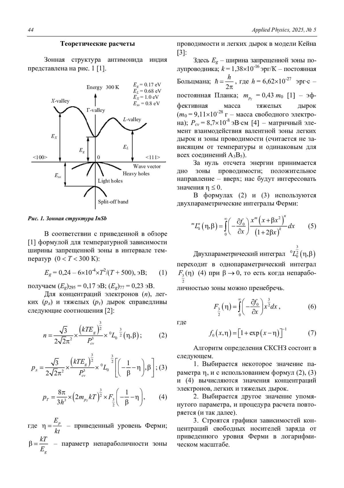 Собственная концентрация свободных носителей заряда (СКСНЗ) является важнейшей характеристикой любого полупроводникового материала и одним из основных параметров, используемых при расчетах рас-пределения электронов и дырок.
