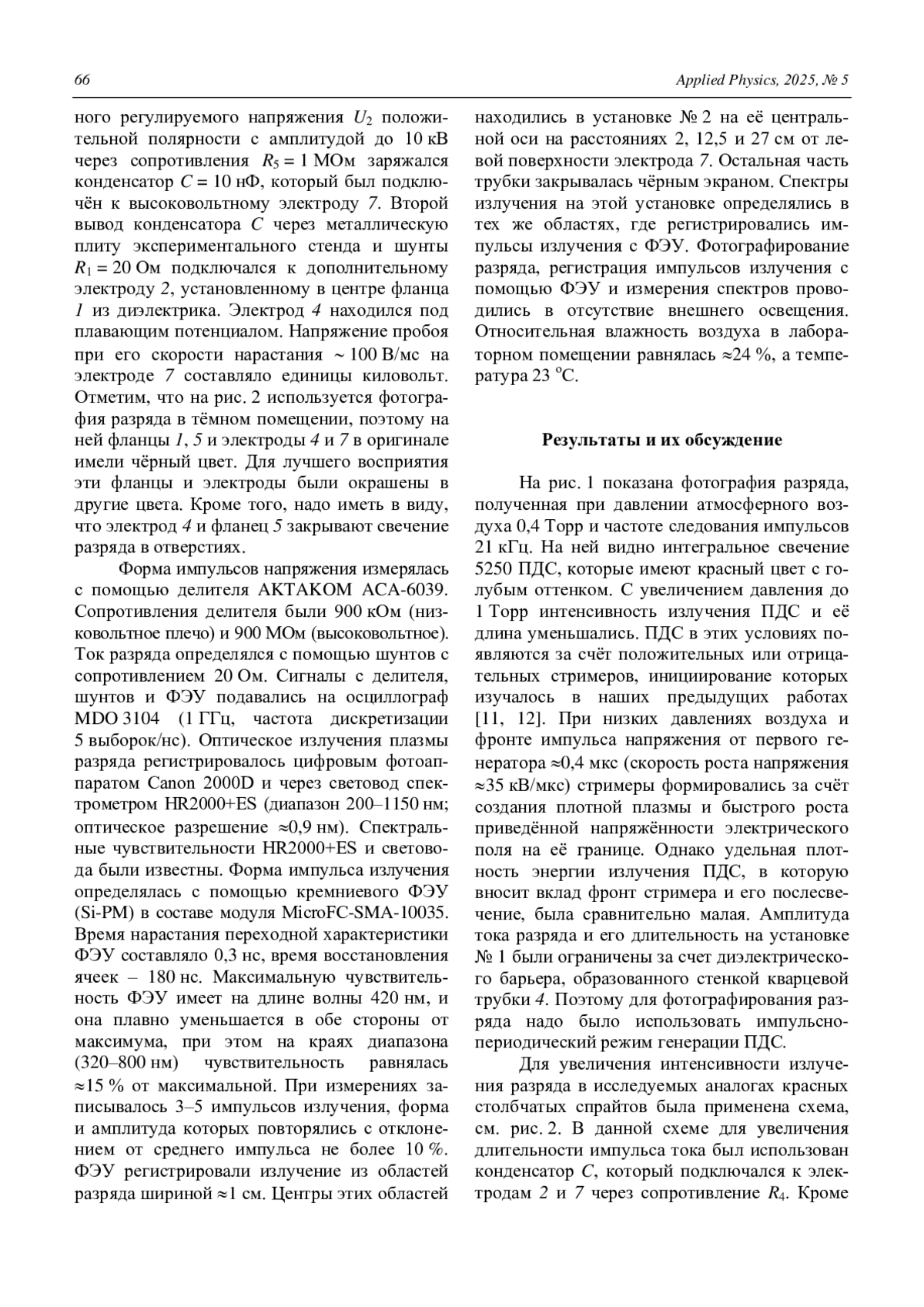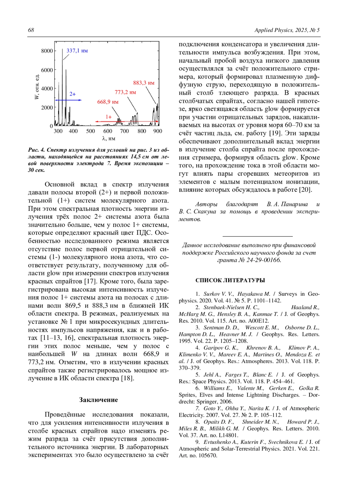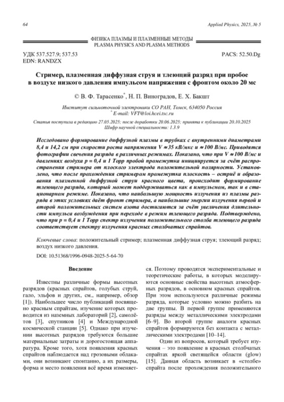 P. S183–S191. - Тарасенко В. Ф., Панарин В. А., Ска-кун В. С., Виноградов Н. П. / Прикладная физика. 2024. № 2. С. 31–37.
