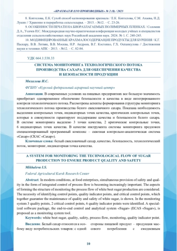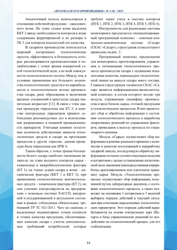5. Егорова М. И. Организация системы контроля технологического потока производства сахара: современный подход / М. И. Егорова // Наука, питание и здоровье: сб. науч. тр. / Научно - практический центр Нан Беларуси по продовольствию. - Минск: Беларуская наука, - 2022. - С. 9-17.