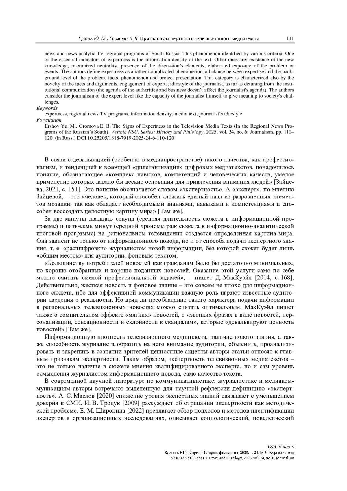 4. Иванова М. М. Экспертность как качество современного медиаспециалиста // INTERLINGUA-2023: Сб. науч. тр. III Междунар. науч.-практ. конф. Липецк, 2023. С. 79-87.