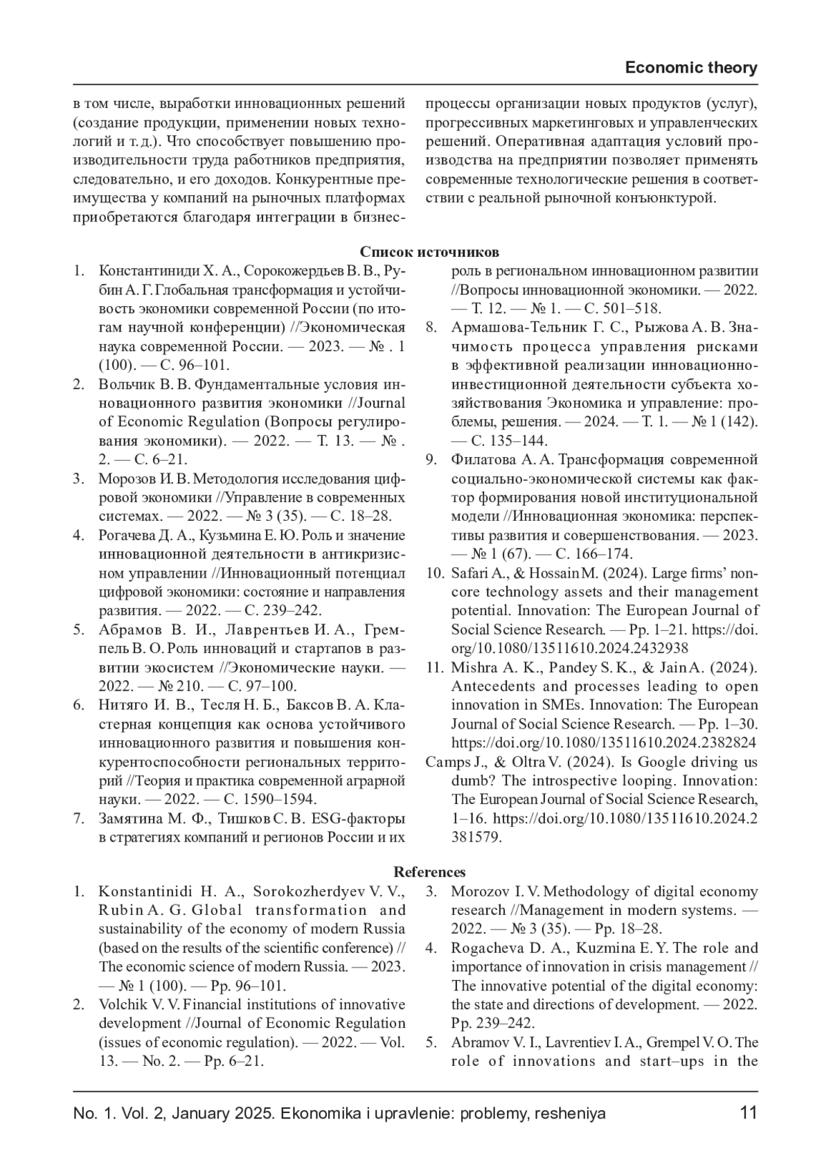 2. Вольчик В. В. Фундаментальные условия инновационного развития экономики //Journal of Economic Regulation (Вопросы регулирования экономики). - 2022. - Т. 13. - №.2. - С. 6-21.